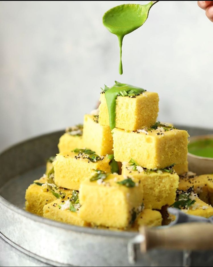 KHAMANG DHOKALA IS A SPECIAL FOOD OF THE GUJRAT SIDE IN INDIA THAT WAS SO PRETTY.